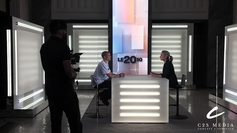 Anne-Sophie Lapix’s 20h10 Show – C.A.R extension system, Black-D Paris, France THE BRIEF In 2025, Black-D contacted C2S to manage the pilot program of Anne-Sophie Lapix’s 20h10 Show for M6 (Mrs Anne-Sophie Lapix is interviewing a personality in connection with the news) in Mediawan’s HQ’s. C2S immediately pointed out the challenge: Transforming Mediawan’s Reception Hall…
