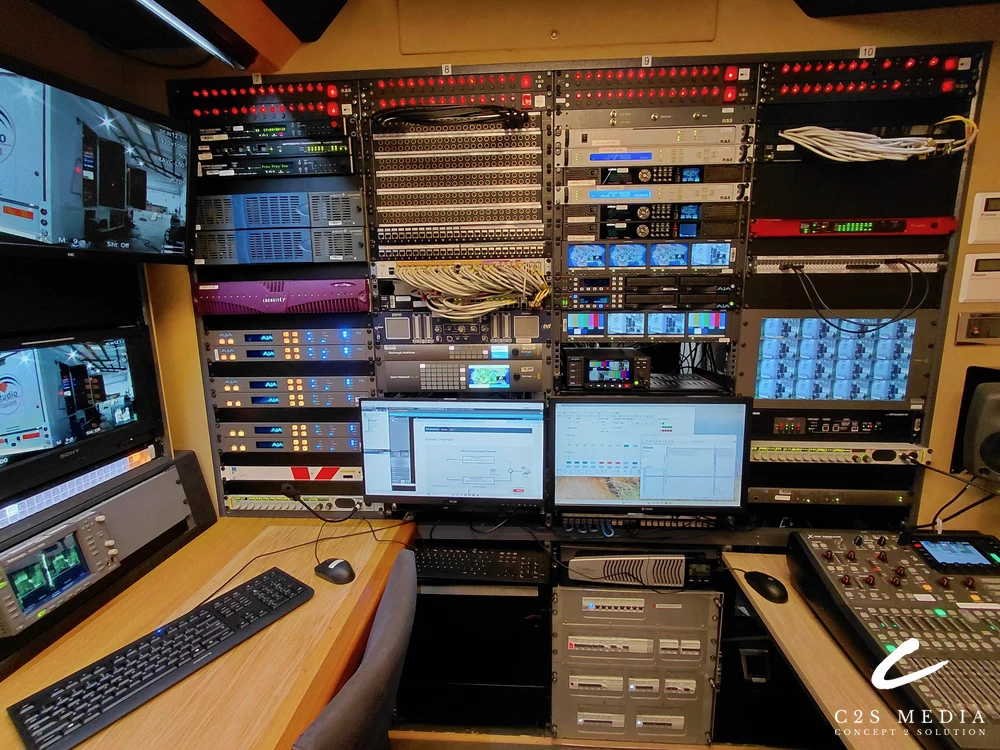 C2S also integrated a wireless talkback system alongside the existing wired talkback, added Dante connectivity to the audio system, and carried out a full refurbishment of the OB van interior and systems. In addition, a 6 kVA UPS system was installed to improve power stability and operational reliability.