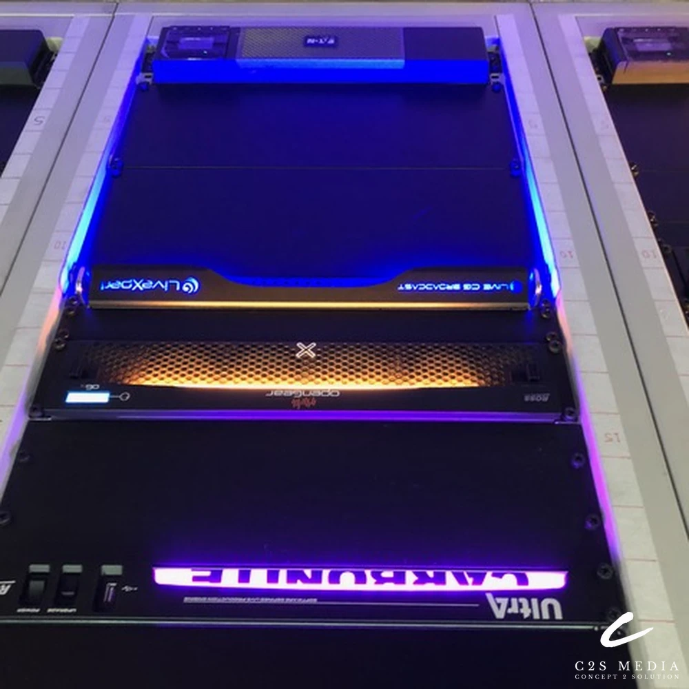 A Ross Carbonite vision switcher and Studer audio mixer along with CG, Teleprompter, wired and wireless audio systems and Intercom support the studio operation. Ross openGear Infrastructure and a NK series router provide the signal handling and processing.