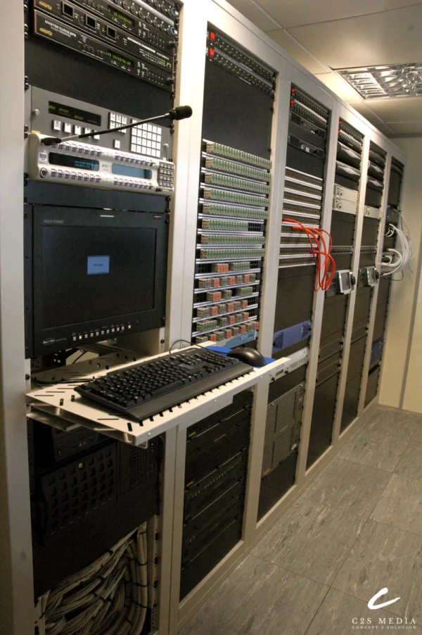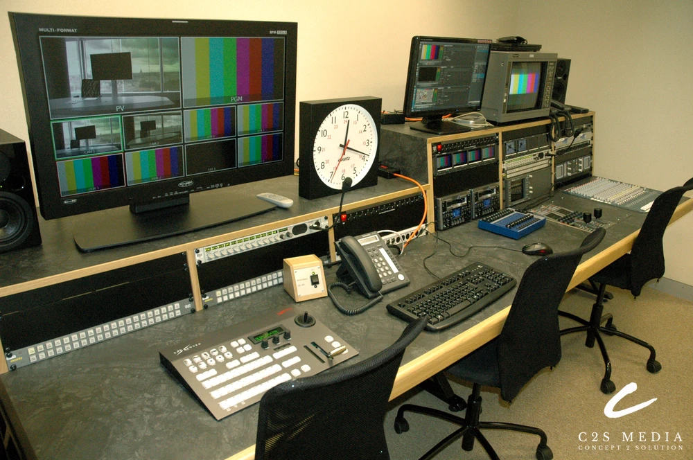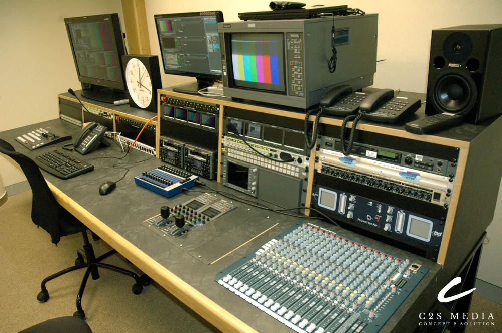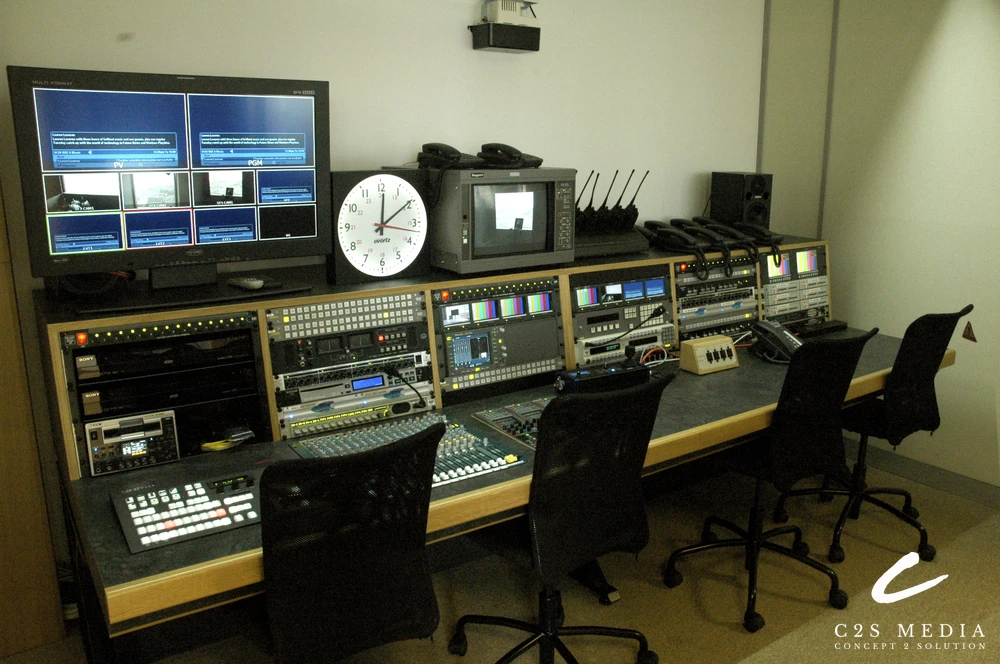 - Three individual control rooms (studio 1/studio 2/studios 3, 4 and 5), with Ross Video vision mixers and graphics, a combination of Soundcraft and Allen & Heath audio mixers, Bradley Engineering robotic controller, Grass Valley T2 DDRs and Sony HVR-1500 VTs